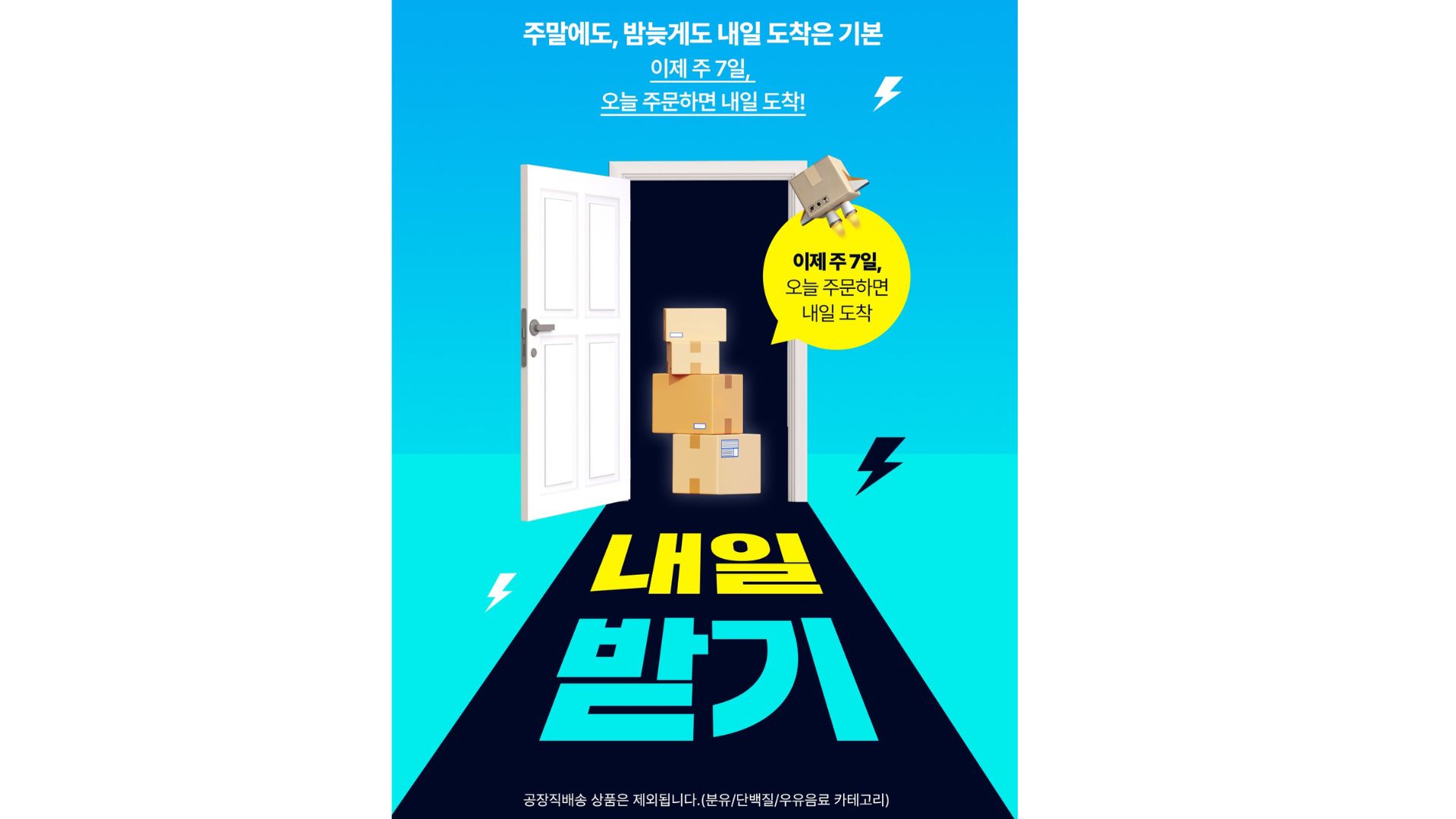 ‘내일받기’ 서비스 도입을 기념하며 1만원 이상 주문 시 사용 가능한 무료배송 쿠폰도 제공하고 있다.