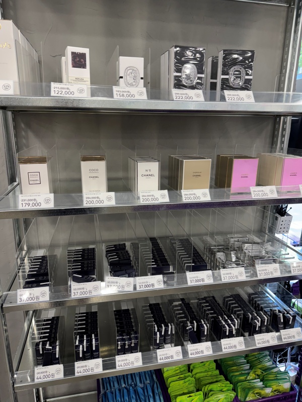 오프뷰티는 K뷰티 제품들이 대부분이다. 저렴하고 빠른 회전 등으로 인해 외국인 관광객들과 국내 고객들에게 서서히 인지도를 올리고 있다. 그런데 오프뷰티는 샤넬과 디올, 딥디크, 메종 마르지엘라 등 명품 수입 향수와 화장품들도 판매하고 있다. 해당 제품들은 병행수입 제품이며 큐앤드비에서 직매입해서 판매하고 있다. 할인율은 조금씩 다르나 백화점 가격 대비 10~40% 저렴하게 판매한다.