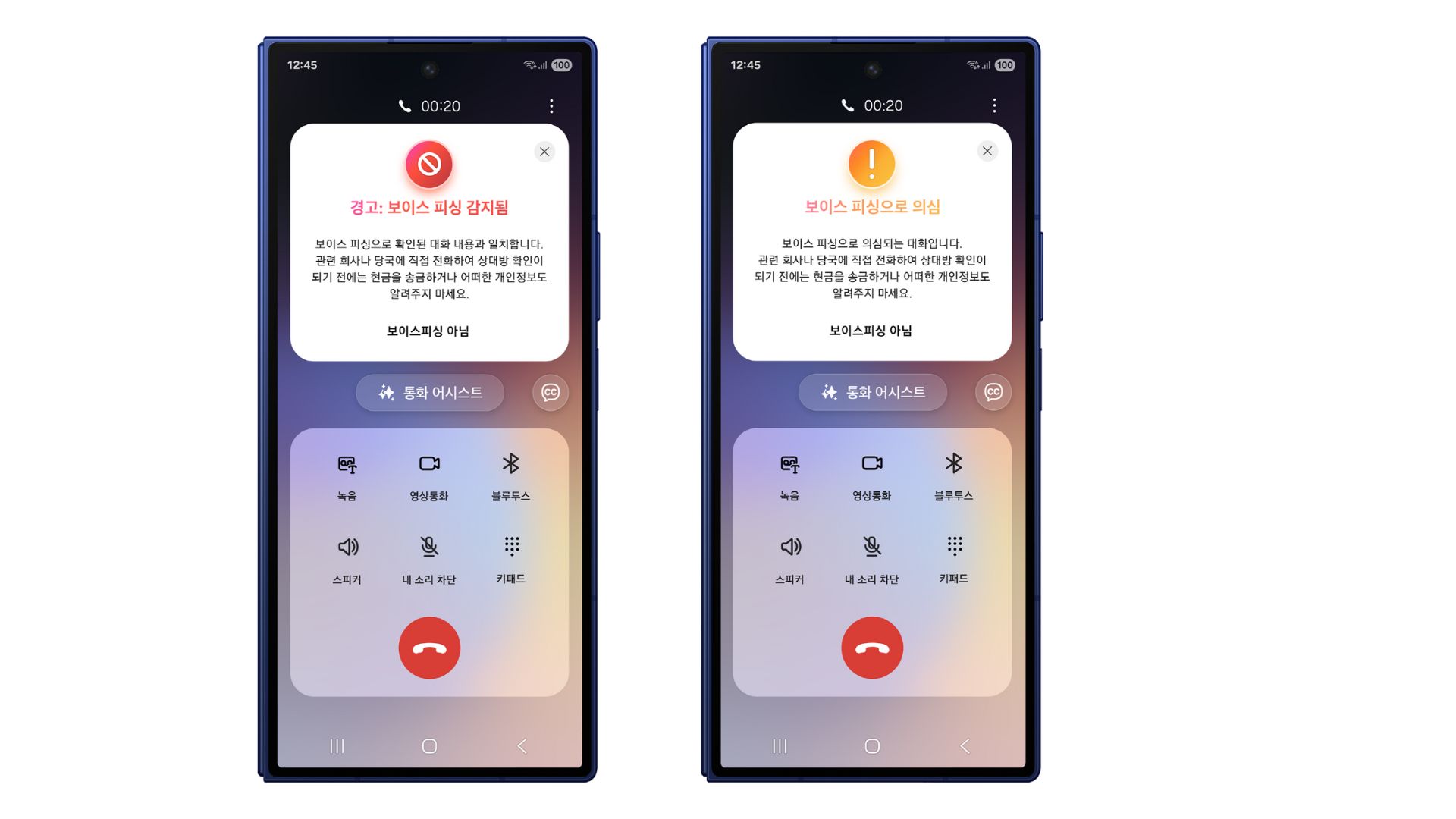 갤럭시 스마트폰은 통화 내용을 토대로 보이스피싱이 의심되면 ‘의심’, ‘경고’ 알림을 통화 중에 사용자에게 보낸다.