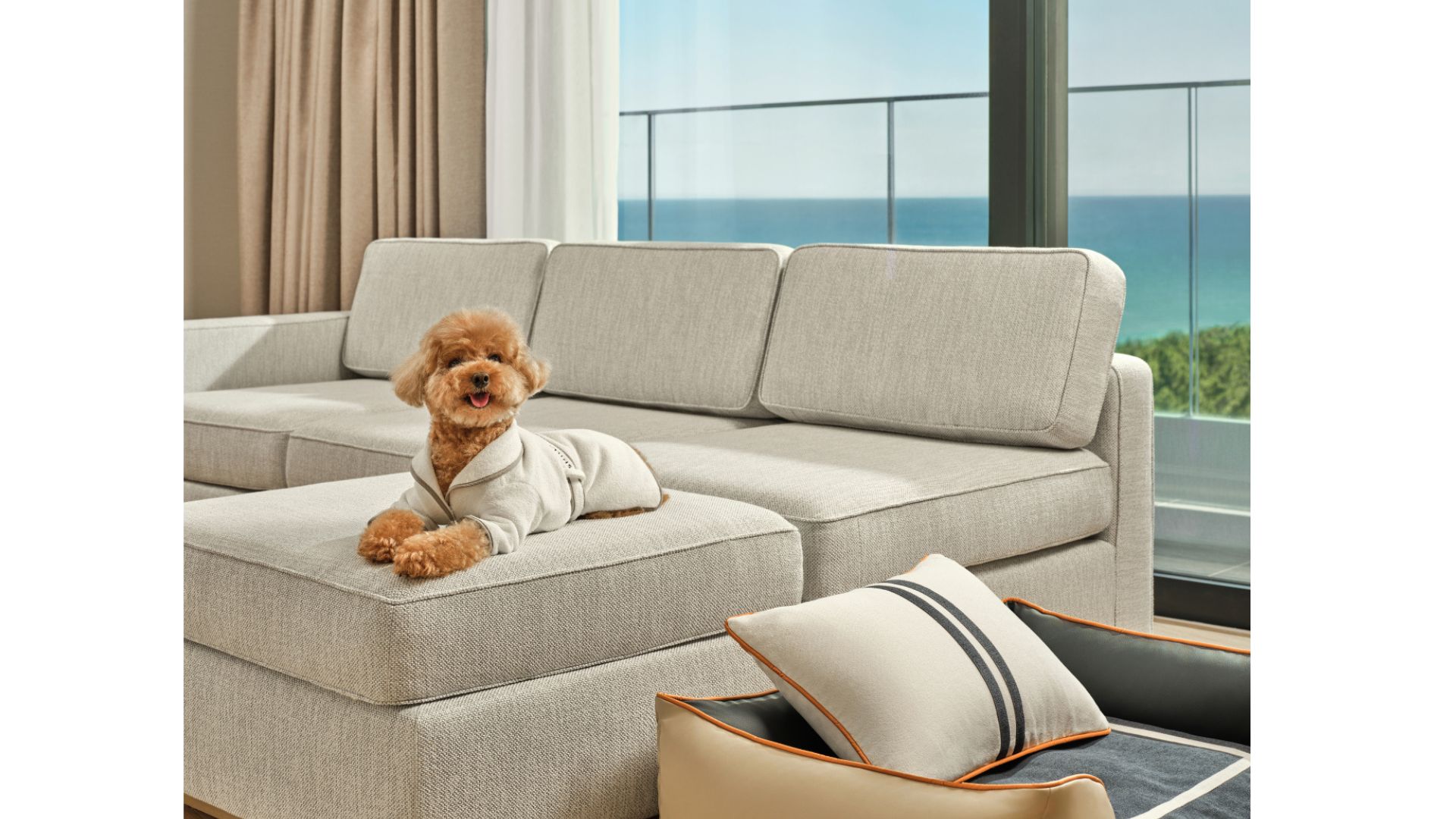 패키지는 △반려견 동반 전용 객실(1박), △펫 배스로브·안대·슬리퍼 모양의 장난감으로 구성된 기프트 등으로 구성되며, 연중 이용 가능하다.