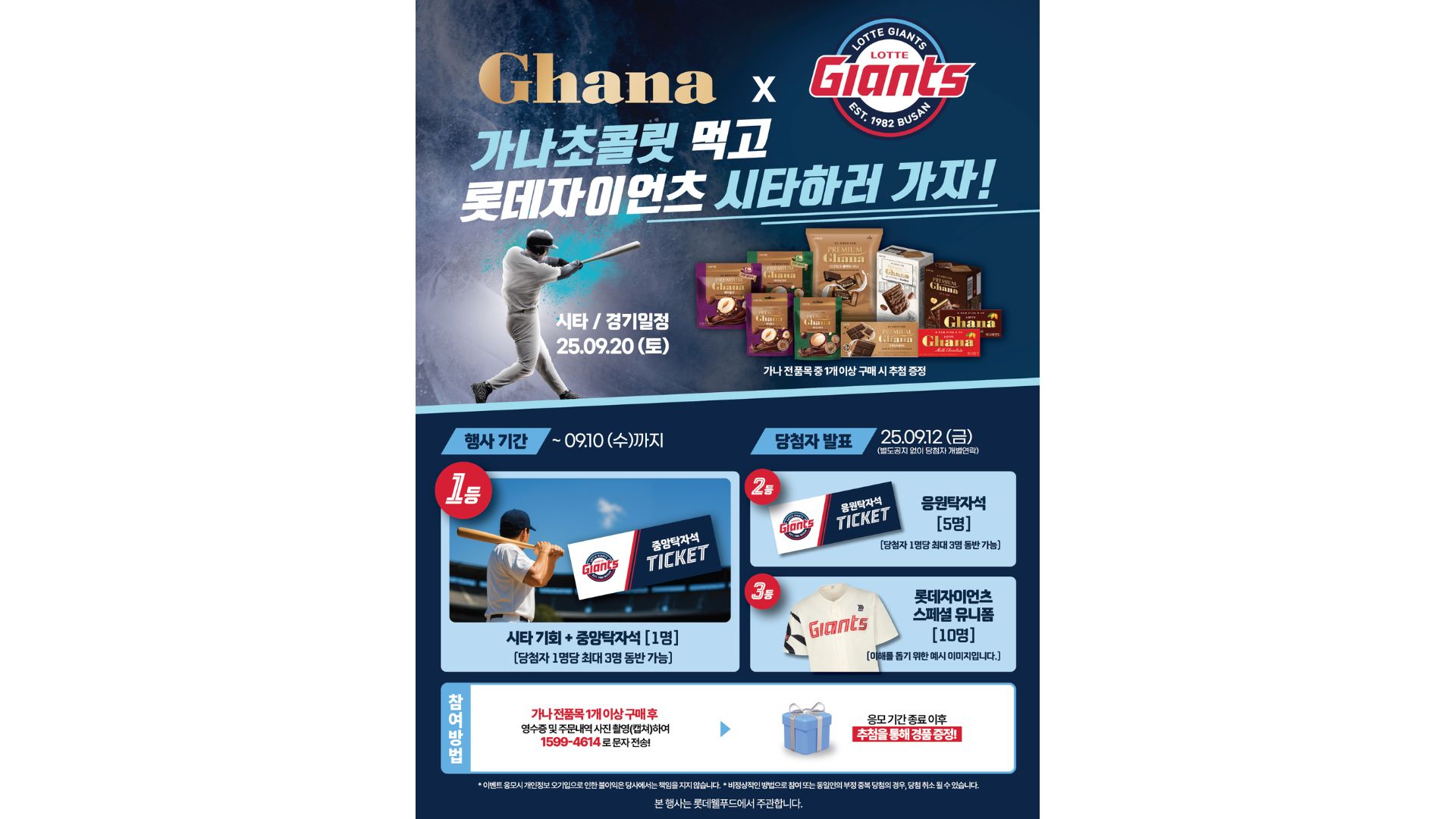 롯데웰푸드는 대표 초콜릿 브랜드 ‘가나’가 롯데자이언츠와 함께 야구팬을 위한 이벤트를 진행한다고 27일 밝혔다.