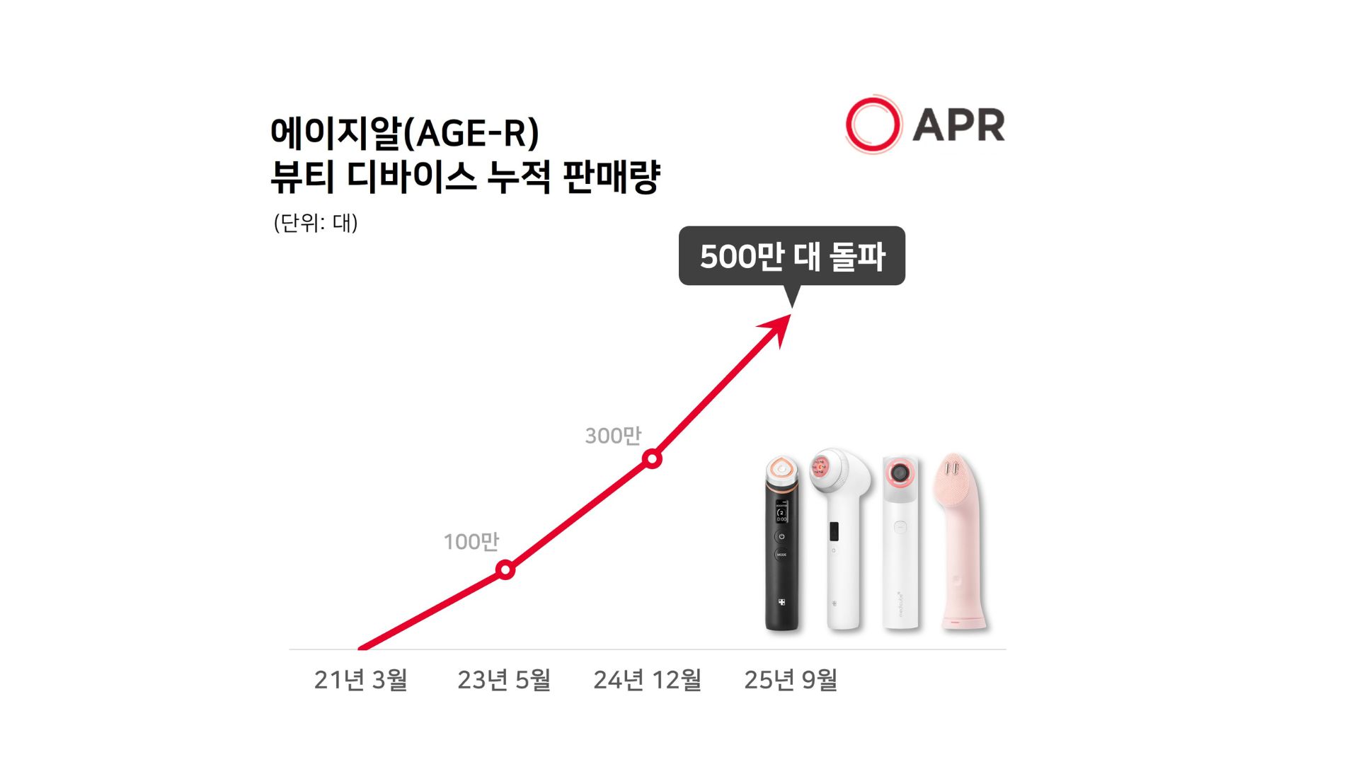 에이피알 관계자는 “뷰티 디바이스 기획부터 생산, 판매까지 전 과정을 자체적으로 수행하며 품질 경쟁력을 확보한 결과 500만 대 판매라는 의미 있는 성과를 달성했다”며 “앞으로도 혁신 기술과 안전성을 기반으로 글로벌 시장에서 신뢰받는 K-뷰티 대표 기업으로 성장해 나가겠다”고 말했다.