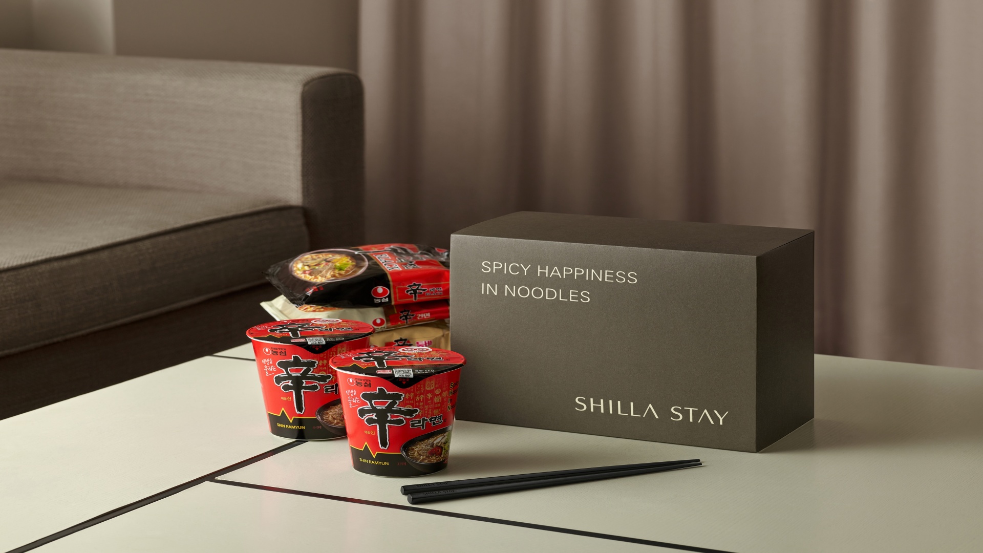 K푸드 트렌드에 맞춰 출시된 ‘스파이시 해피니스 인 신라스테이’ 패키지는 한국의 대표 라면 브랜드 ‘농심 신라면’과의 협업으로, 객실 1박과 함께 ‘신라스테이X신라면 기프트 박스’를 제공한다. 기프트 박스에는 신라면, 건면, 블랙, 툼바 등 봉지라면 4종과 신라면 작은 컵 2개, 한정판 신라스테이 젓가락 2세트가 포함돼 있다.