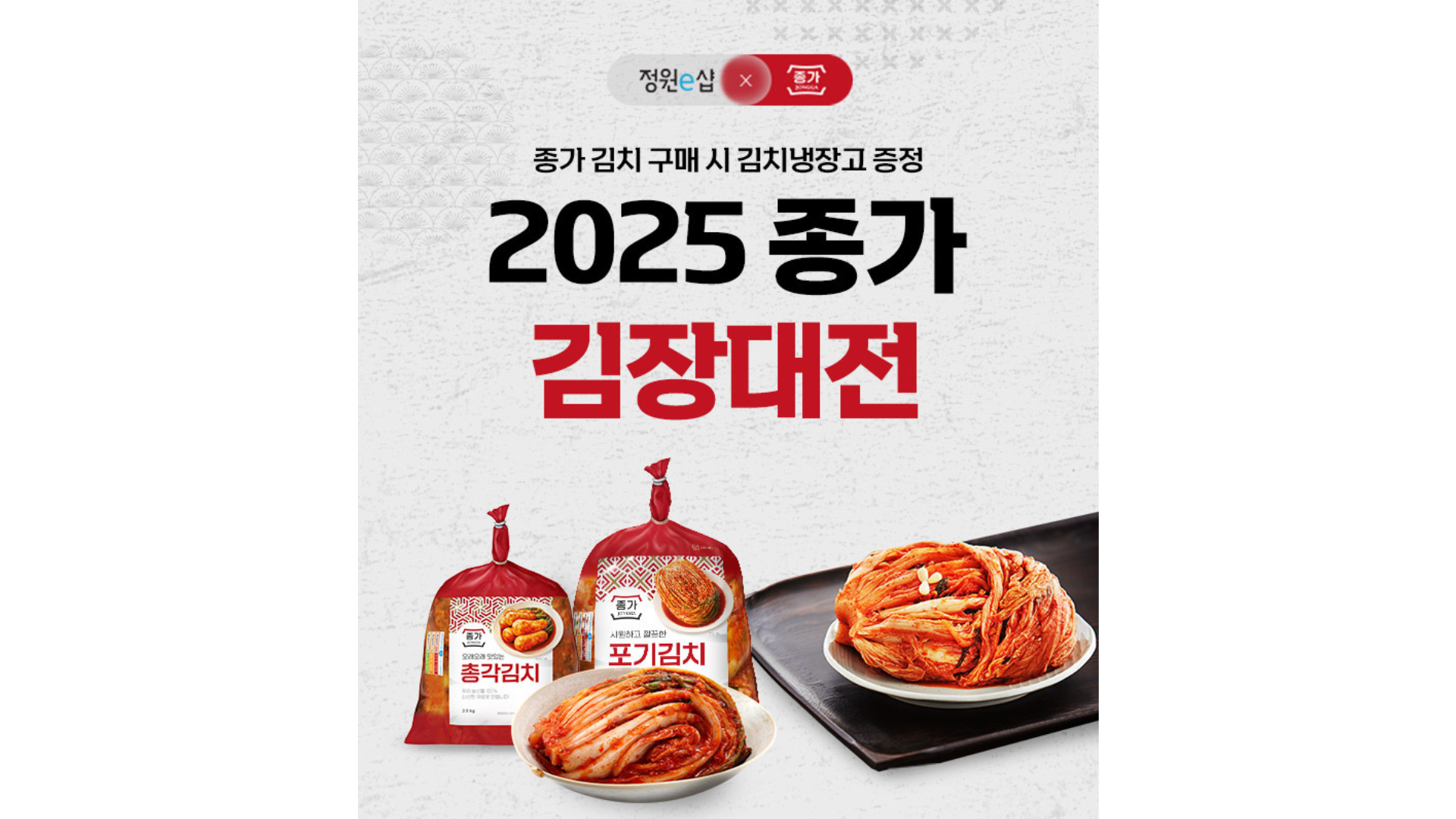 대상 공식 온라인몰 정원e샵이 김장철을 맞아 대한민국 대표 김치 브랜드 종가의 포장김치와 김장재료 등을 총망라해 판매하는 ‘2025 종가 김장대전’을 진행한다고 4일 밝혔다. 사전예약 시 할인 및 경품 등 특별한 혜택까지 누릴 수 있다.