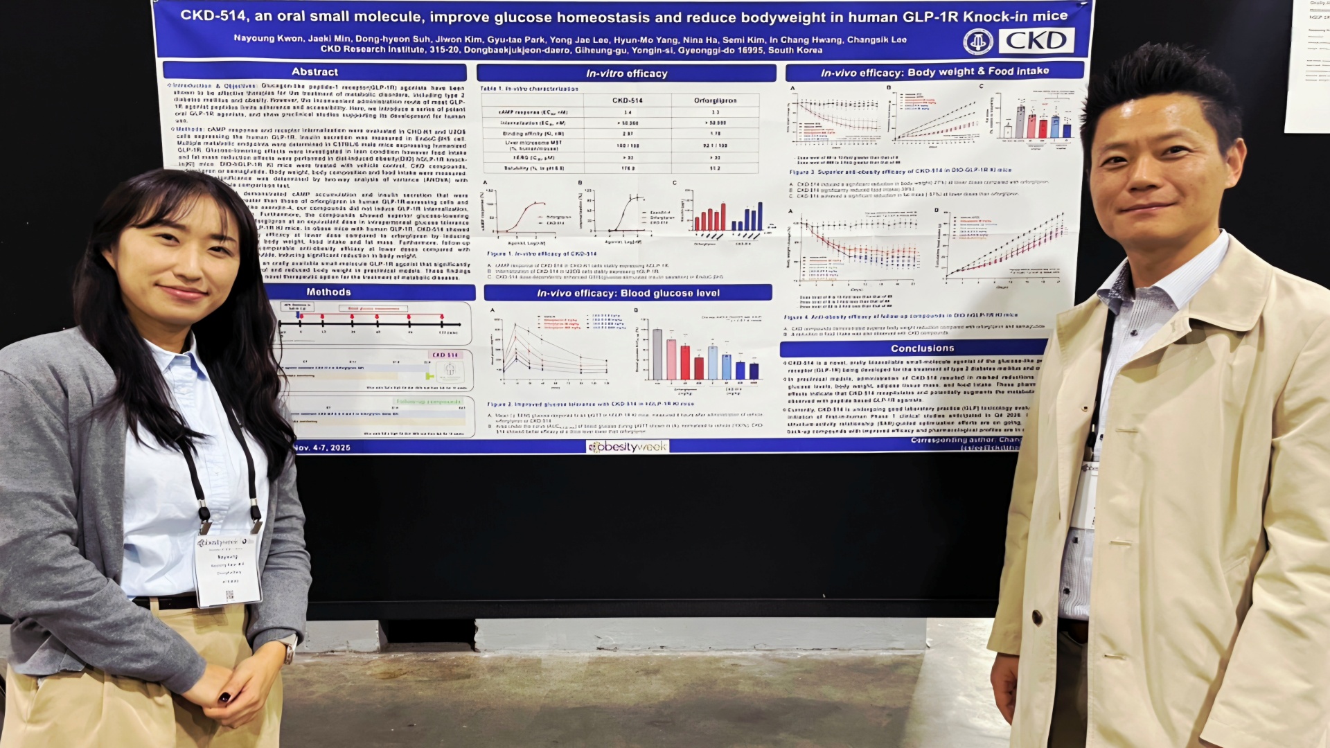 또한 4일 미국 애틀란타에서 열린 ‘2025 미국비만학회(2025 Obesity Week)’에서는 경구용 GLP-1 수용체 작용제(GLP-1RA) 신약 후보물질 ‘CKD-514’의 비임상 연구 성과를 발표했다.