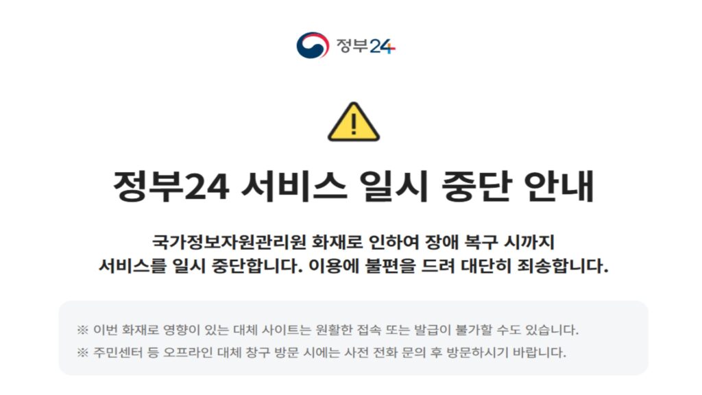 국가정보자원관리원 화재…70개 정부 서비스 중단